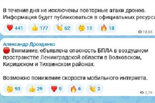 Налеты БПЛА на Ленобласть продолжаются уже неделю. Ранее власти сообщали о повреждениях дома в Bыборге, пожарах в портах Приморска и Усть-Луги, на промплощадке Киришей.