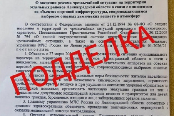 На фоне атак БПЛА в 47-м регионе активизировались злоумышленники. Они подделывают документы и рассылают информацию о якобы режиме ЧС на территории нескольких районов.