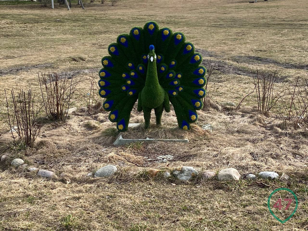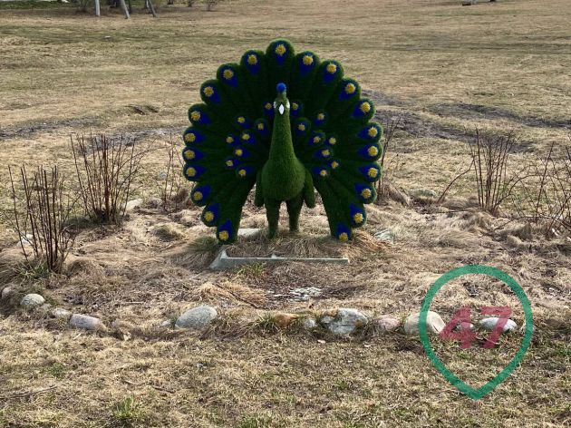 Местный храм, ДК и фельдшерско-акушерский пункт показали себя крепкими конструкциями. Малые архитектурные формы, они же дворовые фигуры, тоже устояли. Их в Молодцово две. Первая - лосёнок, а вторая — какой-то зелёный павлин.