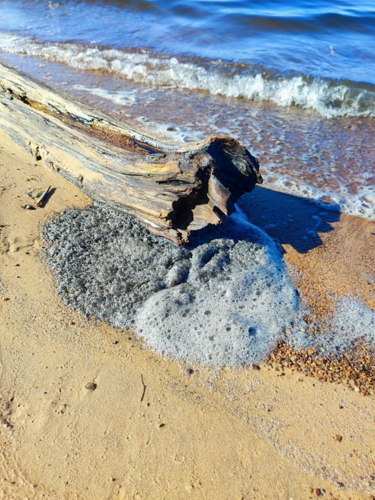 На берегу залива в Сосновоборском городском округе заметили пену и мутные разводы нехорошего оттенка. Наблюдения сделаны на фоне предупреждения синоптиков про сложные метеоусловия.
