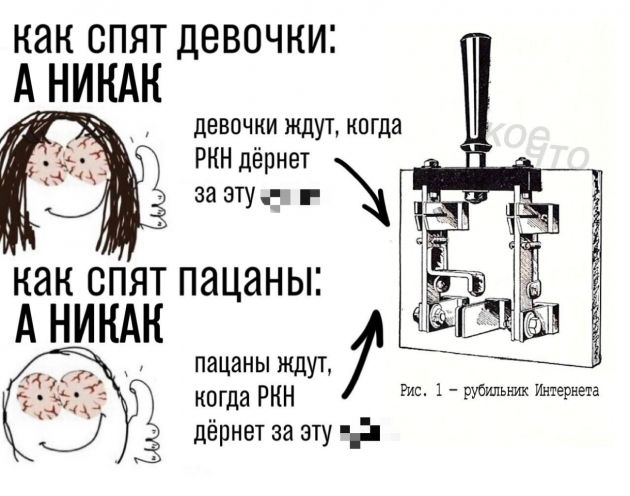 Наводнили каналы и постироничные картинки. В том числе об ожидании, когда Роскомнадзор "дернет за рубильник интернета".
