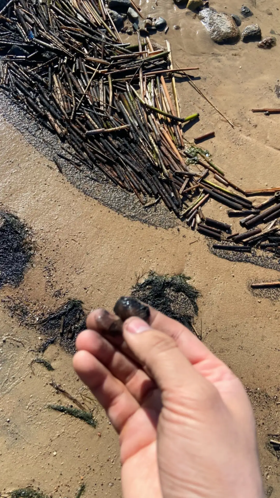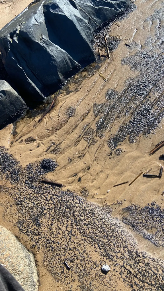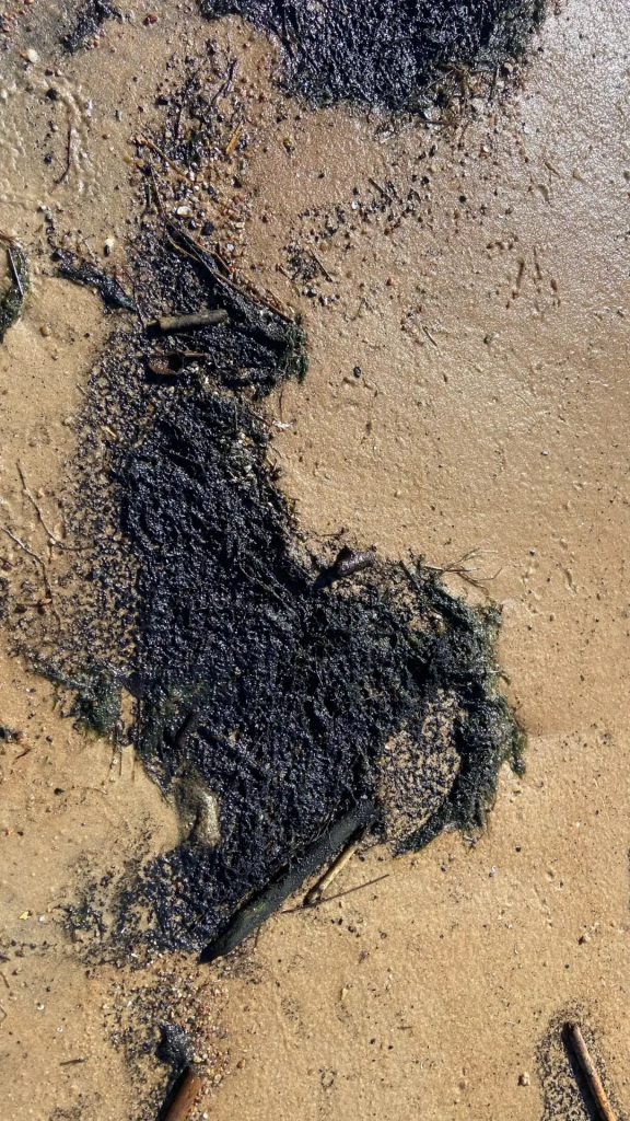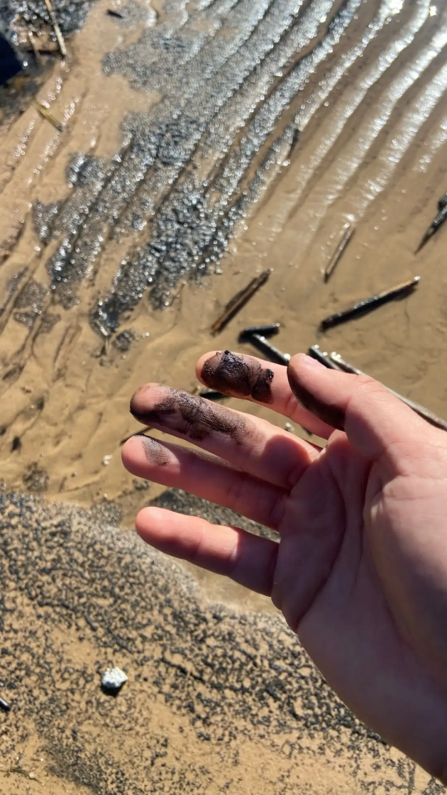Своими наблюдениями на пляже Липово с 47news 2 апреля поделился лидер фракции КПРФ в ЗакСе Ленобласти Иван Апостолевский. Снимки сделаны около половины третьего дня. В кадре черные сгустки чего-то вязкого.