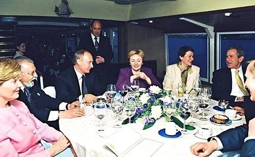Владимир Путин и Президент США Джордж Буш с супругами на теплоходе "Нью Айленд"