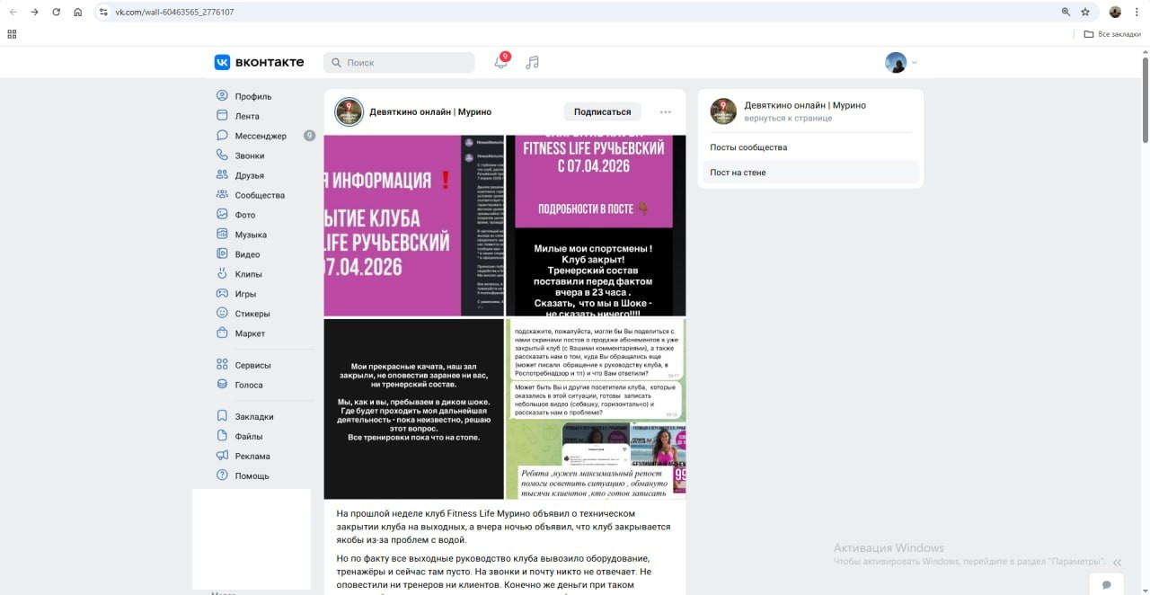 "Уровень предоставляемых услуг не соответствует стандартам нашей сети", – посетовали на странице фитнес-зала "ВКонтакте".