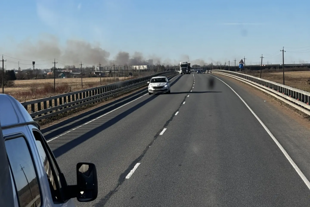Горящую траву тушат в Кингисеппском районе Ленобласти. На фотографии с места происшествия видны впечатляющие клубы дыма.