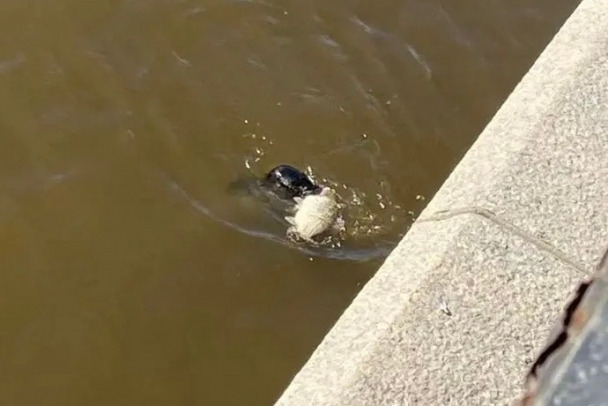 Тюлененок добывал себе пропитание в канале Петербурга. Улова ему должно хватить на пару дней. О подобных случаях просят сообщать специалистам.