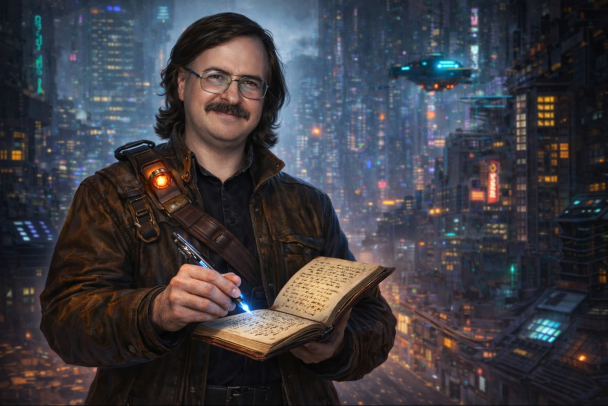 Инженер-системотехник – по образованию, известный фантаст – по призванию. Александр Щеголев родом из Тосно, всю свою жизнь посвятил киберпанку. Это такой поджанр научной фантастики: "Жизнь ужасна, а технологии на высоте". Как и любой писатель, размышляет о будущем. Но реальность, как известно, часто не соответствует нашим ожиданиям. Изучили путь от печатной машинки до нейросетей. И дошли до подпольного ИИ.