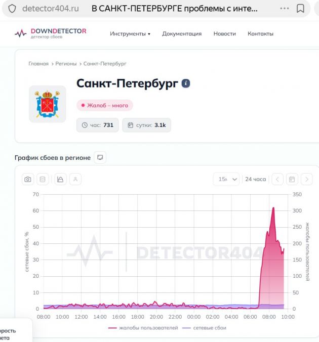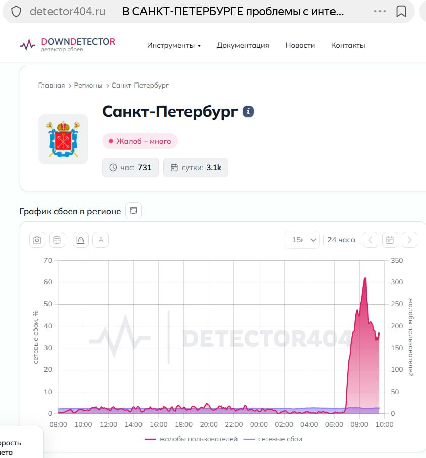 В это же время о сбоях начали сообщать и жители Петербурга. Здесь за сутки зафиксировали до 140 тысяч жалоб. Речь тоже идет о банковских сервисах и Telegram. Как передает "Фонтанка.ру", читатели рассказали об отсутствии подключений в Выборгском и Амдмиралтейском районах города.