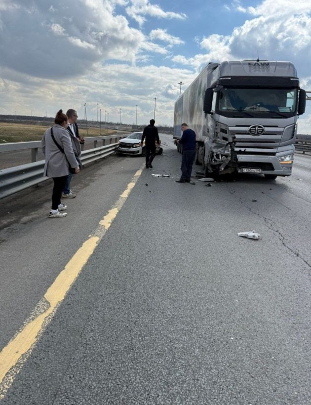 "Большегруз влетел в стоявшее такси "Поло". Водитель с разбитой головой, но в целом жив и цел. Оказали первую помощь, вызвали скорую и работников ЗСД", - передают очевидцы.