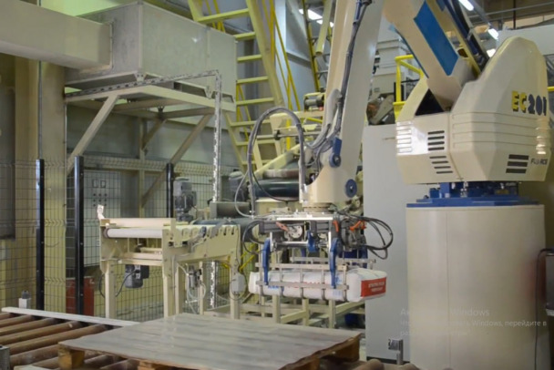 Новую установку смонтируют на узле мелкой фасовки. Там организуют процесс компактной укладки груза для дальнейшей транспортировки. Робот будет принимать поштучно мешки с удобрениями, а на выходе будет формироваться упакованный поддон с 25 мешками.