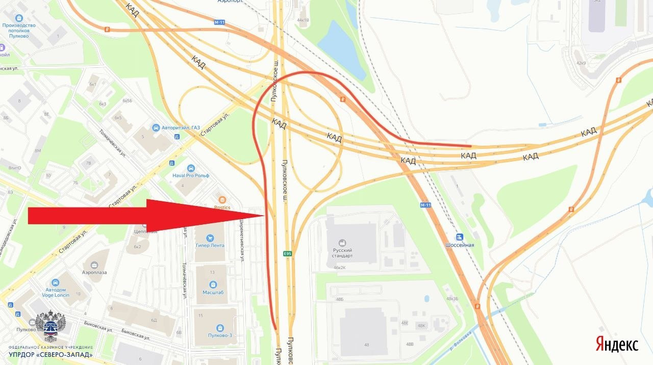 Как сообщили в ФКУ Упрдор "Северо-Запад", с 14 по 21 апреля будет попеременно перекрываться одна из двух полос на съезде №5 с внутреннего кольца КАД на Пулковское шоссе. Он ведет в направлении Ленобласти и аэропорта Пулково.