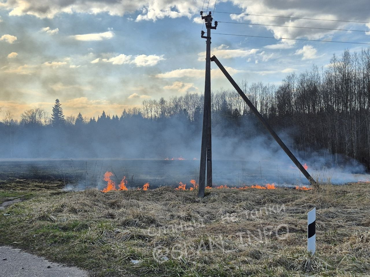 На выходных масштабный пал травы произошел под Гатчиной. Камера сняла, как огненная полоса разошлась рядом с ЛЭП. Пожарные работали на участке в длиной 4 километра.