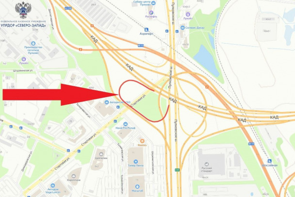 Как сообщили в ФКУ Упрдор "Северо-Запад", с 24 по 28 апреля будет перекрыт съезд в направлении из Петербурга, с Пулковского шоссе на внешнее кольцо КАД. Речь идет о съезде №7.