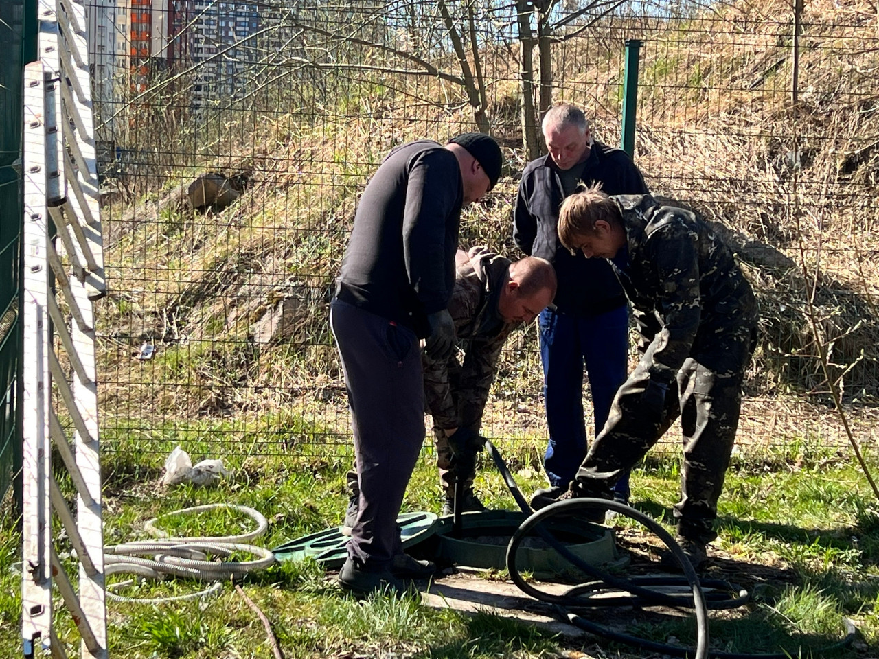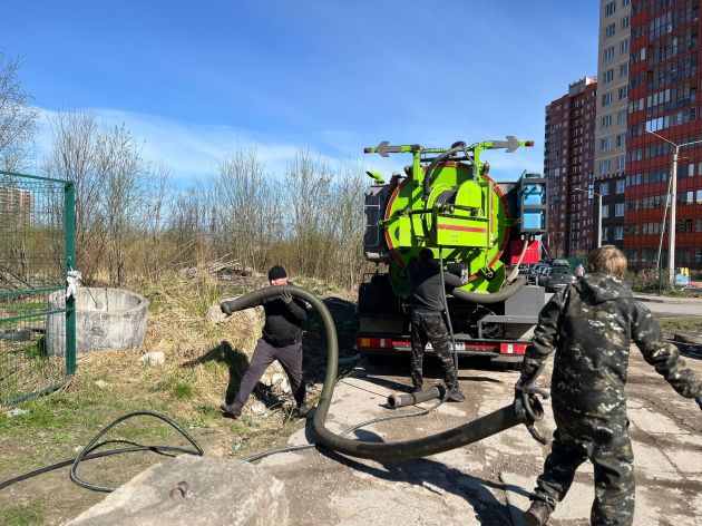 Ранее на участке обнаружили, что расплющило трубу на глубине залегания более 5 метров. Велась перекачка из колодцев в канализационную насосную станцию.
