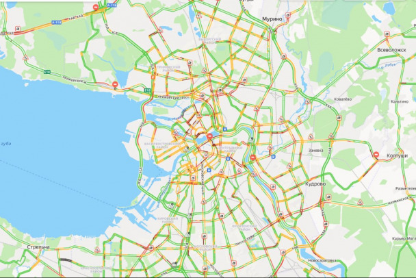 Особенно затруднено движение на Садовой улице, Невском и Литейном проспектах. Также сложно проехать, если двигаться в сторону Троицкого моста.
