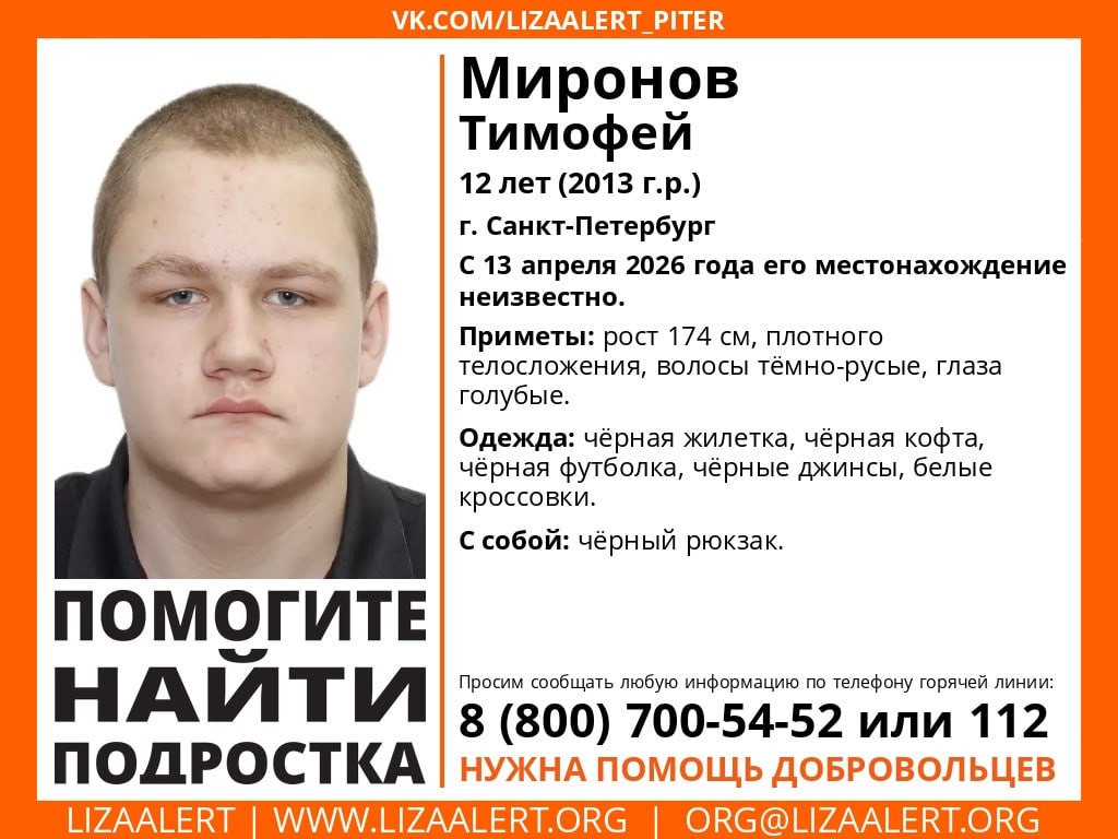 По данным 47news, он пропал днем 13 апреля – ушел из школы. Пропадает уже не в первый раз. Заявка на поиски поступила от опекунов. Предполагается, что юный петербуржец мог уехать и в другой регион.