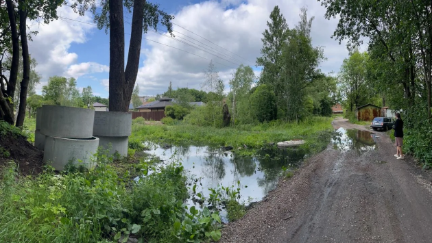 - К некоторым домам она подходит вплотную, соседи даже чуть насыпали земли, чтобы канализация не заливалась в емкости с септиком. Лужи с неприятным запахом были огромные, занимали даже дорогу. Накануне прошлых выходных воду откачали, сейчас дорога сухая, - рассказала 47news жительница микрорайона Кристина.