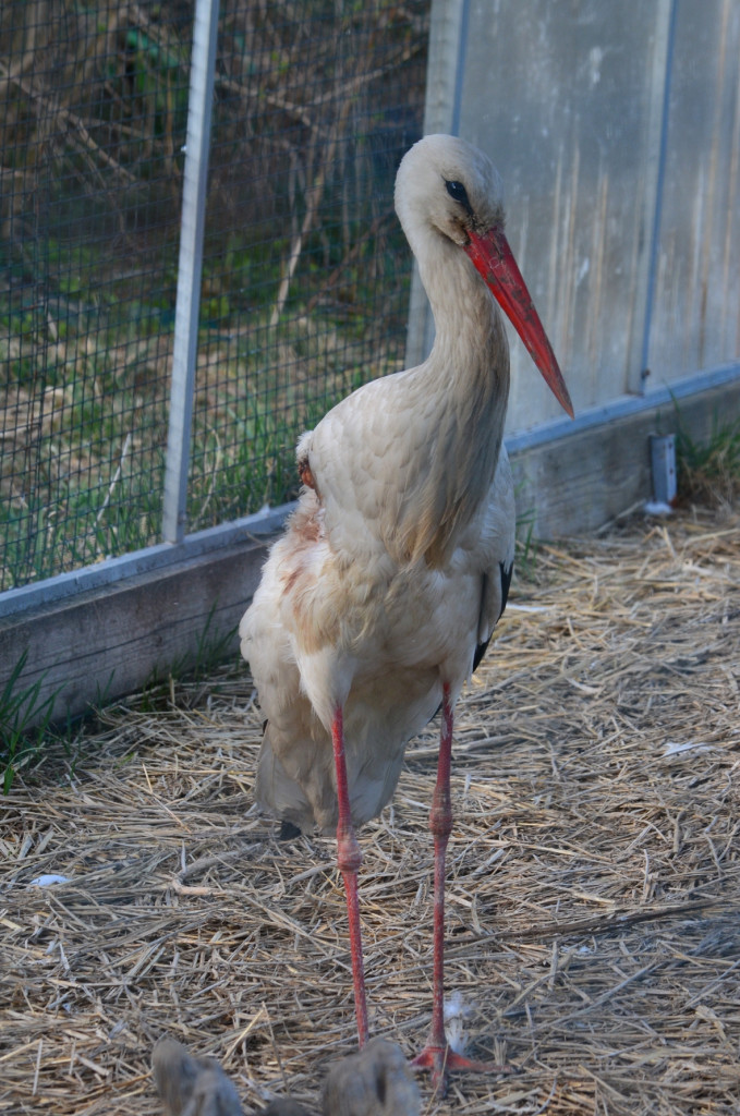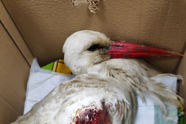 Аист только вернулся после зимовки в деревню Новоселье. Местные жители дали ему имя Федор, ждали его и подкармливали. Неизвестно, что с ним случилось, но пернатого обнаружили в деревне со сломанным в двух местах правым крылом — открытый перелом плечевой кости и костей предплечья. Две женщины привезли птицу в центр, через день ее прооперировали.