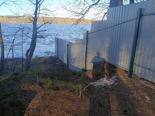 - В прошлом году огородили два участка в 10–15 метрах от воды. Тогда жители уже насторожились. В этом году владелец начал вырубать деревья, видимо, готовится к строительству большого видового дома. В субботу вбили столбы, а в воскресенье построили забор прямо у самой кромки воды. Такого раньше не было: даже у очень обеспеченных здесь заборы отступают метров на 50 и везде сохраняют свободный проход, – поделился один из жителей Федор.