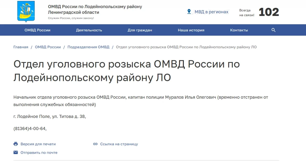 - начальник полиции ОМВД Лодейного Поля Иван Кулев;