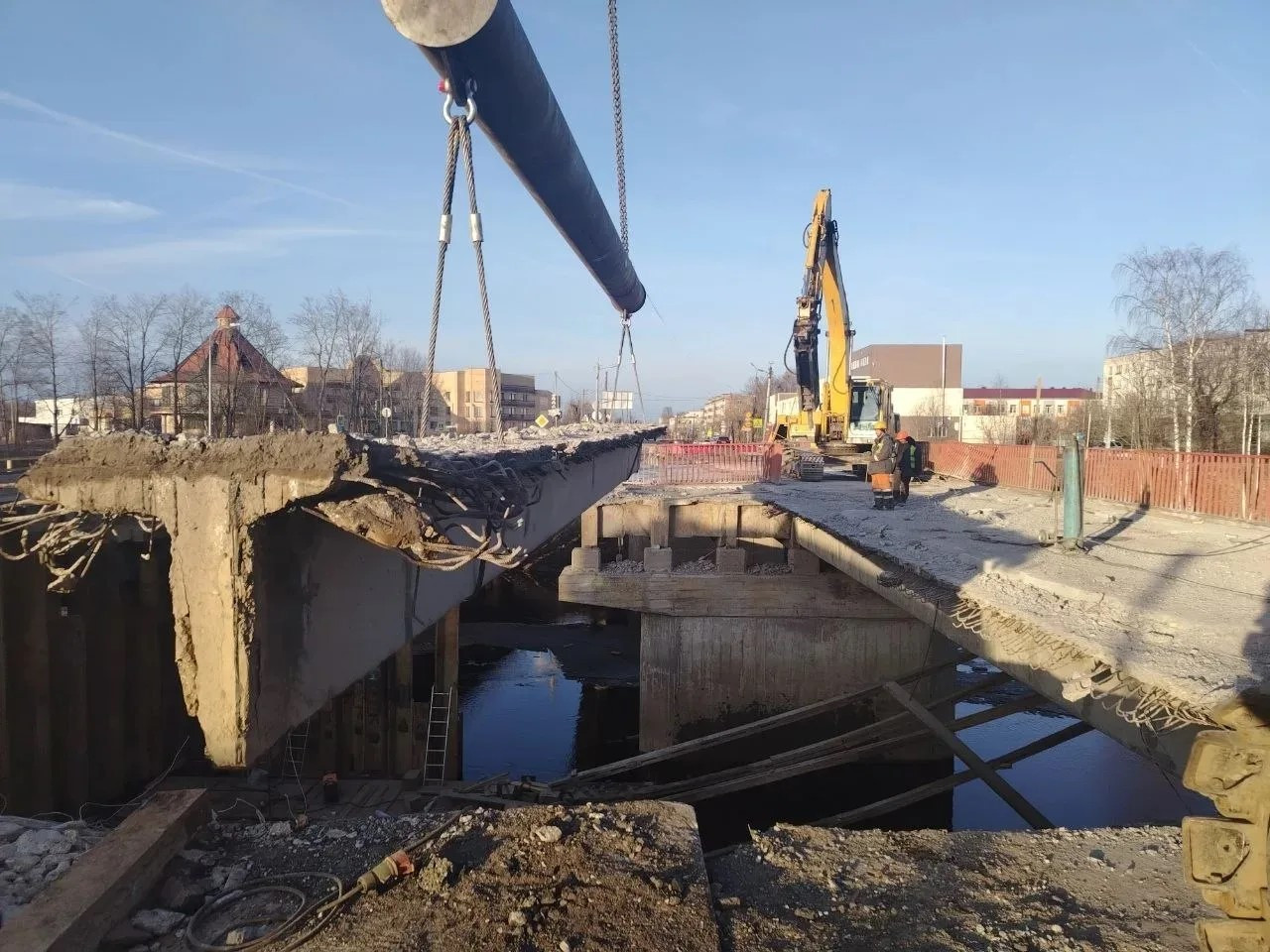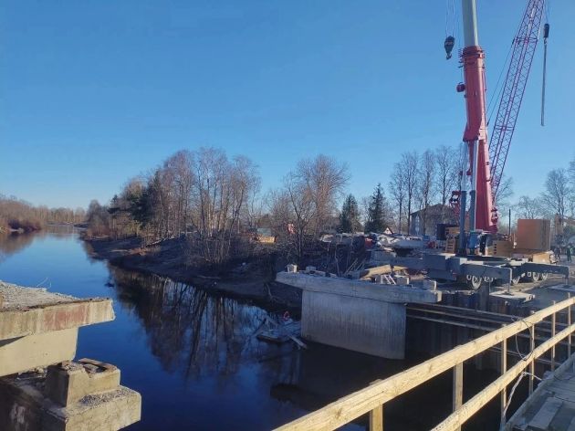 К 22 апреля строители демонтировали последний пролет и одну опору старого моста. На период демонтажа и строительства новой переправы возведен временный мост - с 16 марта обеспечено непрерывное сообщение двух берегов реки Мегрега. Демонтаж планируют закончить в нынешнем, то есть первом квартале 2026 года.