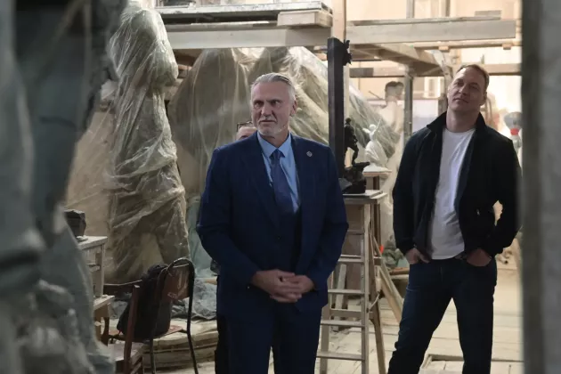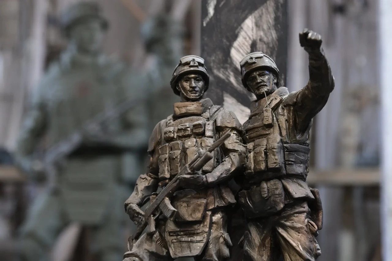 "Идея композиции — показать русского воина, передать силу духа русского солдата, это собирательные образы парней, которые сейчас исполняют свой долг, свою работу на передовой, именно их мы показываем со всех сторон, во всей красоте", - прокомментировал он идею памятника, который готовит Монументальная скульптурная мастерская.