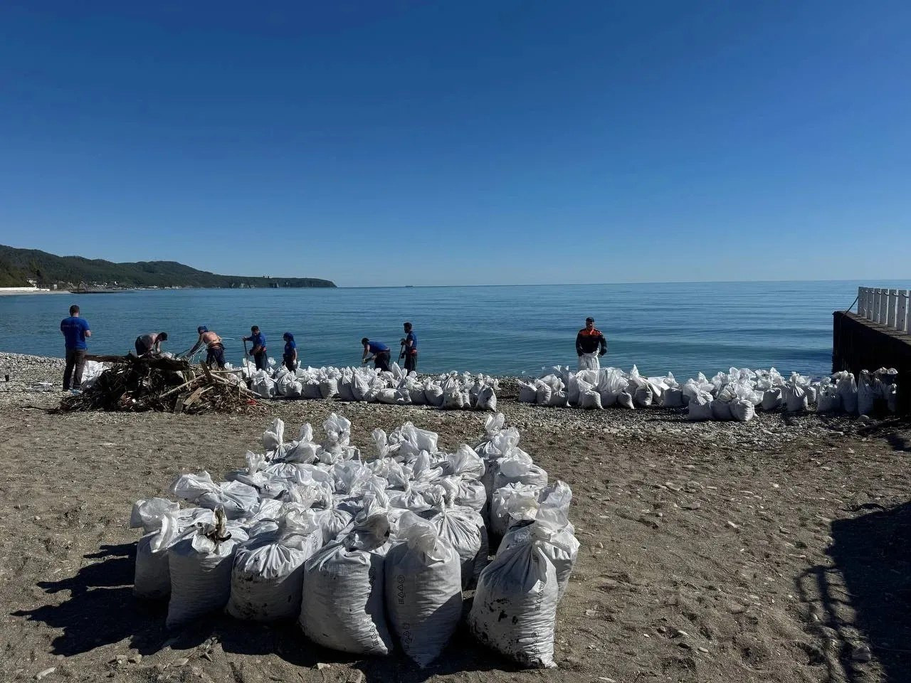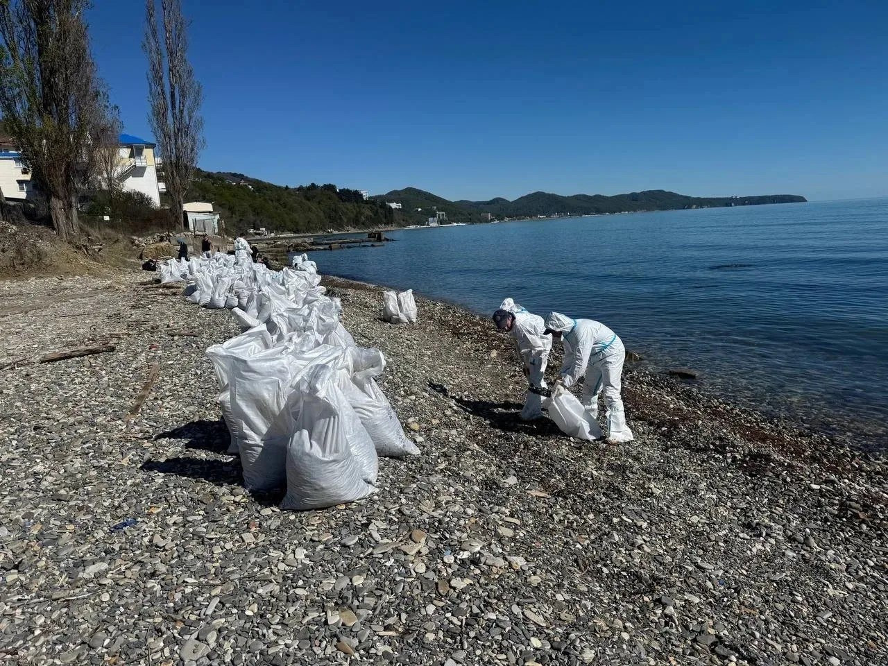Десятки машин и больше сотни человек задействованы в уборке берега в Туапсе. Принято решение усилить группировку.