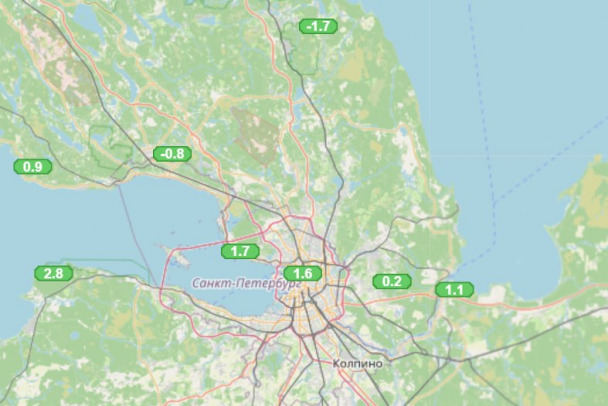 В Рощино под Выборгом – -0,8°C. На юге, западе и востоке региона температура в пределах нуля до +3. В Петербурге и пригородах утром около +1,5°C.
